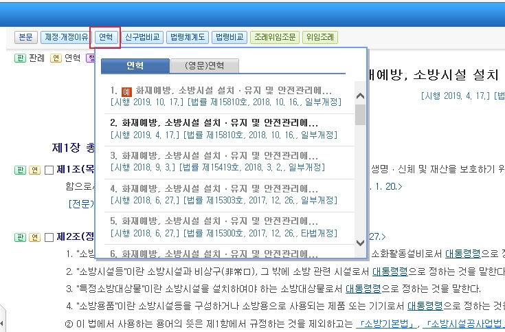 참고) 개정전 법률을 확인하시려면 상기 법령 클릭 후 관련법 상단의 [연혁]을 클릭하시기 바랍니다.
