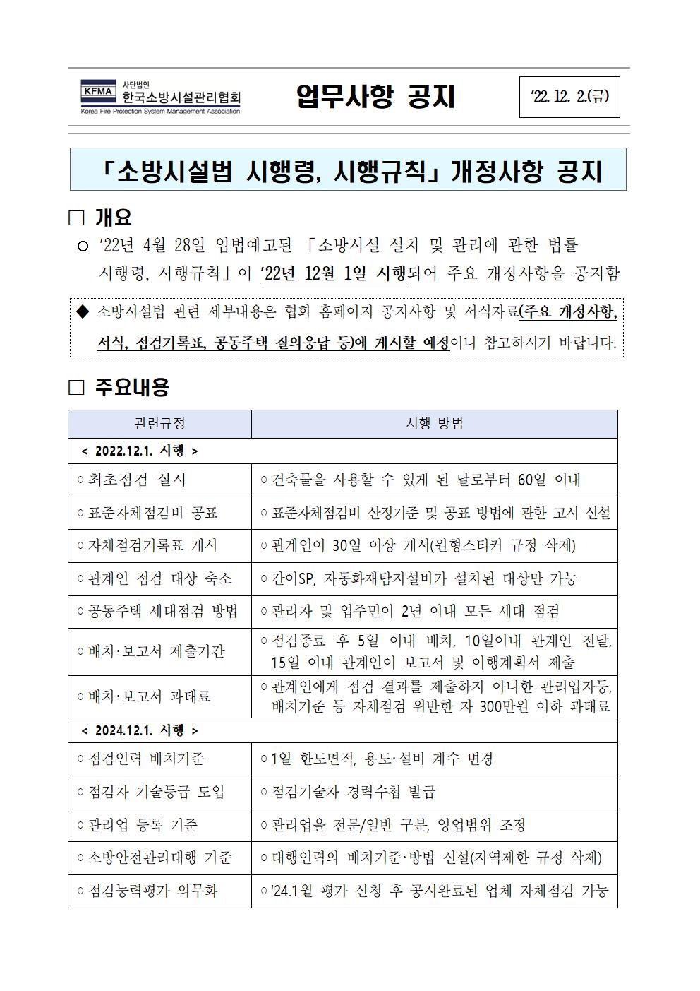「소방시설법 시행령, 시행규칙」 입법예고(안) 관련 공동주택 세대 전수점검 시행안내