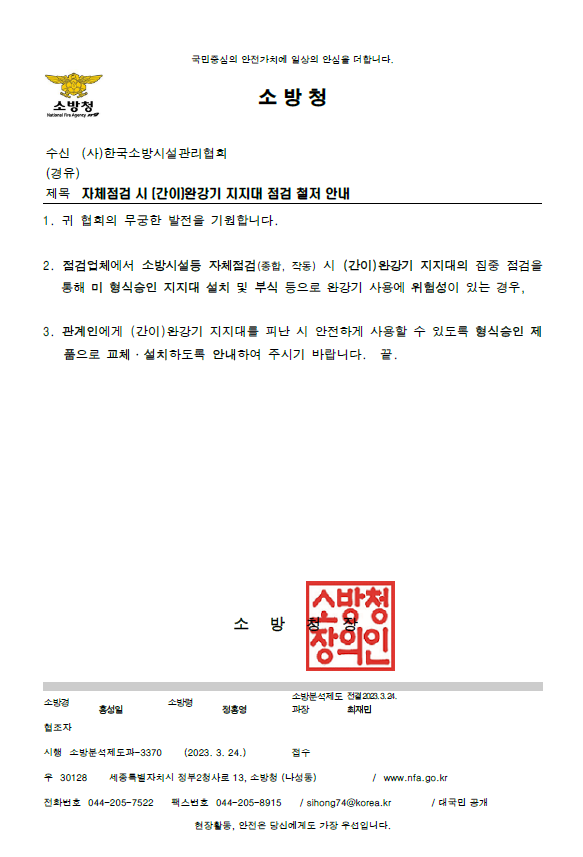 점검인력 배치통보 기간 위반 시 업무처리 방법 알림(소방청)